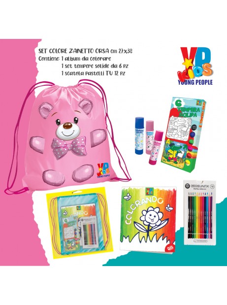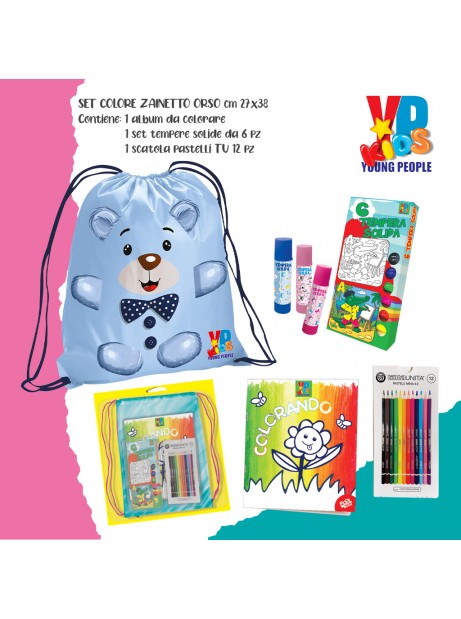 Set da colorare Young People Kids Sacca pastelli a matita tempera solida album