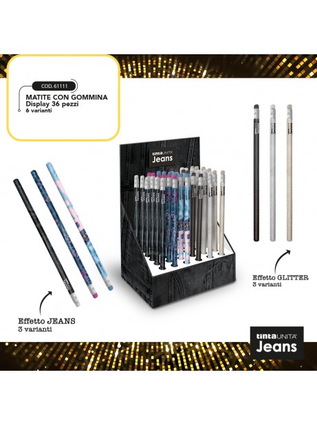Matita con Gomma Tinta Unita Jeans 2024 Glitterata pois