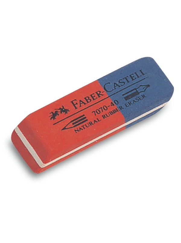 Gomma per cancellare di colore rosso e blu, in caucciù, indispensabile per cancellare sia le tracce di matita (lato rosso) che di inchiostro (lato blu). La sua particolare forma a scalpello, la rende maneggevole da usare su qualunque foglio di carta. Dimensioni 50x18x8 mm.Gomma per cancellare di colore rosso e blu, in caucciù, indispensabile per cancellare sia le tracce di matita (lato rosso) che di inchiostro (lato blu). La sua particolare forma a scalpello, la rende maneggevole da usare su qualunque foglio di carta. Dimensioni 50x18x8mm.