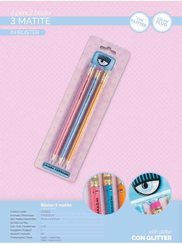 Set 3 matite fusto glitter assortite Chiara Ferragni x Pigna