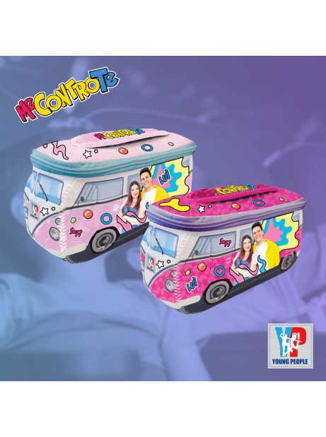 Astuccio a forma di Pulmino nei colori blu e rosa