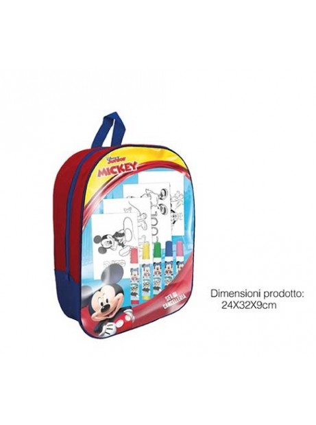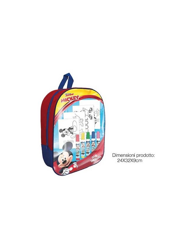 Zainetto asilo trasparente con fogli da colorare e colori topolino