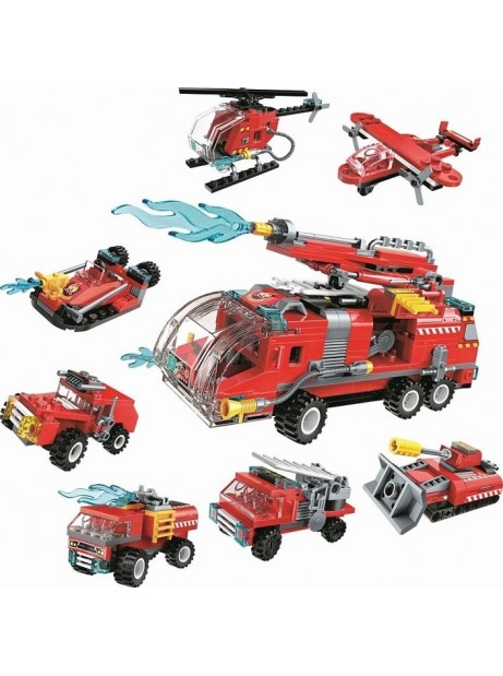 Costuisci i mezzi dei vigili del fuoco, modellini di camion, elicotteri, imbarcazioni e carro armato dei pompieri.