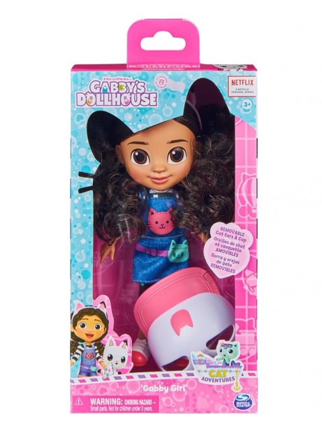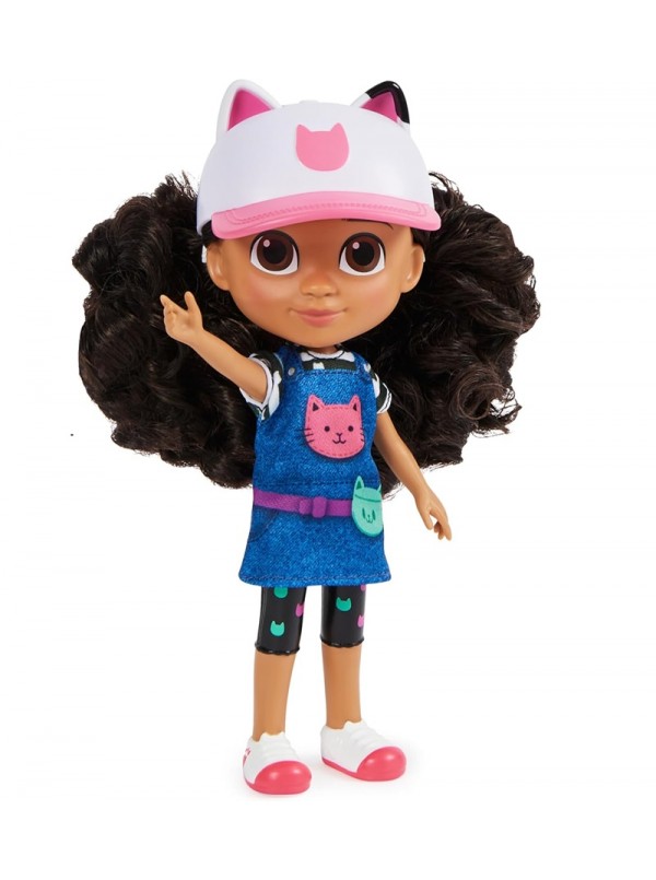 BAMBOLA DA 20,3 CM DI GABBY'S DOLLHOUSE: con il suo outfit Gabby è pronta a mille avventure. È completa di dettagli realistici ispirati al cartone, come l'abito in denim, le orecchie da gatto e il cappellino da baseball, che danno vita alla bambola