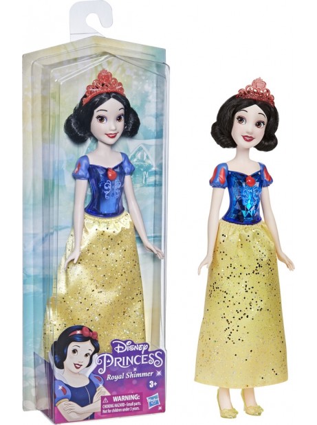 Nel film Disney Biancaneve e i sette nani, l'amorevolezza, la dolcezza e la gentilezza di Biancaneve la rendono davvero la più bella del reame. Con questa bambola Royal Shimmer Disney Princess, i bambini potranno immaginare Biancaneve quando trova la felicità tra i sette nani, rivivendo i momenti preferiti del film o creando nuove avventure. Ispirata al personaggio del film, questa bambola Disney include una fashion doll con una gonna e gli accessori (una corona e le scarpe) nei suoi caratteristici colori giallo e blu. I bambini potranno divertirsi a ricreare le scene del film Disney con i capelli neri della fashion doll. La bambola di Biancaneve è il regalo perfetto per un compleanno o per Natale per bambine e bambini dai 3 anni in su ed è una fantastica aggiunta alla collezione di bambole Disney!