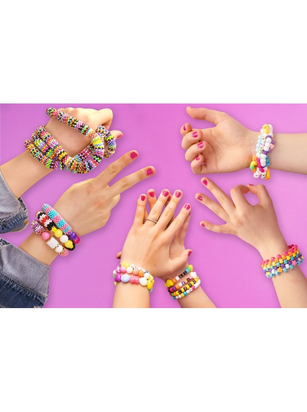 Ogni barattolo contiene 1.5 metri di filo e uno o più tipi di perline differenti: il divertimento è mescolarle tutte assieme per un effetto SUPER ORIGINALE e scoprirai come possono essere meravigliosi gli abbinamenti casuali e imprevedibili!