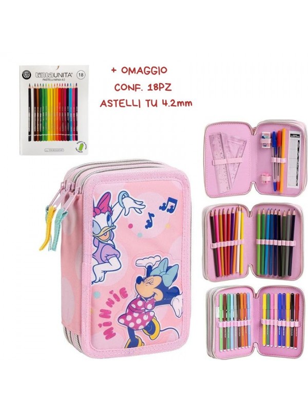 Astuccio Minnie 3zip completo colori scuola bambina Giotto topolina Disney