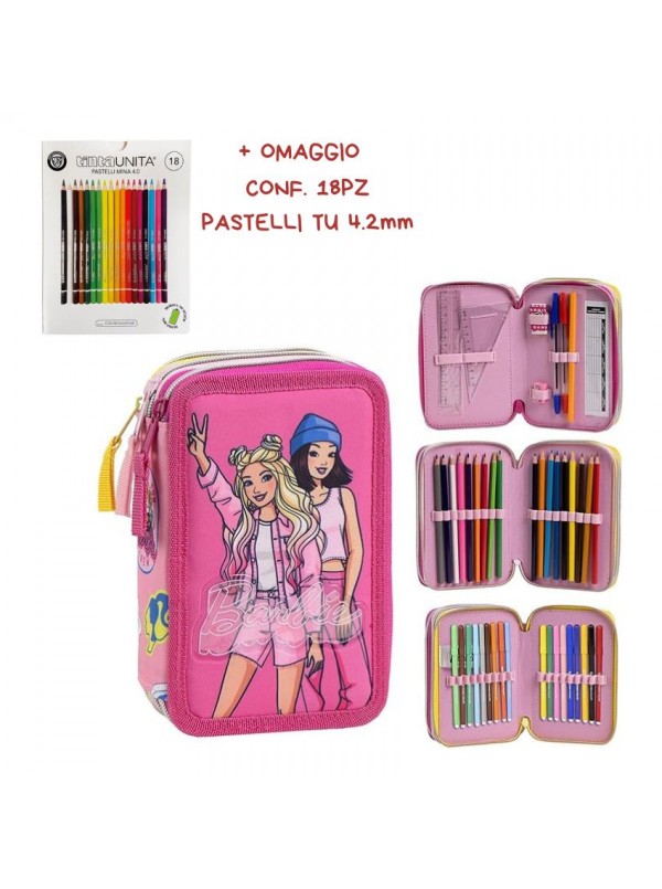 Astuccio Barbie 3zip completo colori scuola bambina Giotto