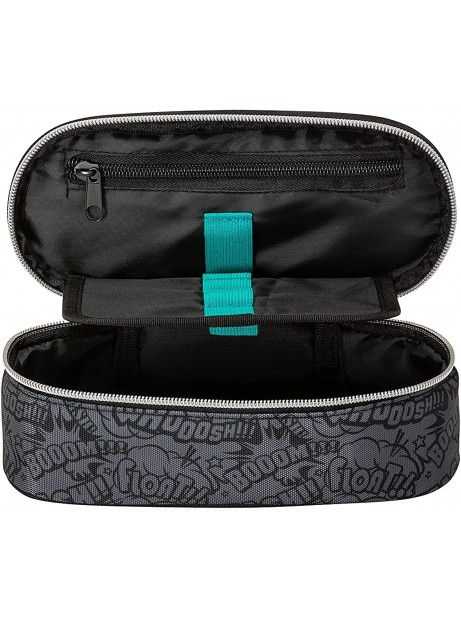 Astuccio in tessuto con chiusura a zip, interno organizzato con seconda zip ed elastici per penne o matite.