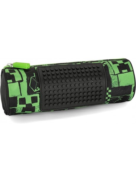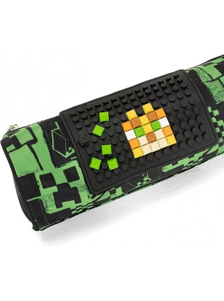 Astuccio Tombolino Scuola Rotondo Verde - Borsellino Pixels Minecraft + omaggio