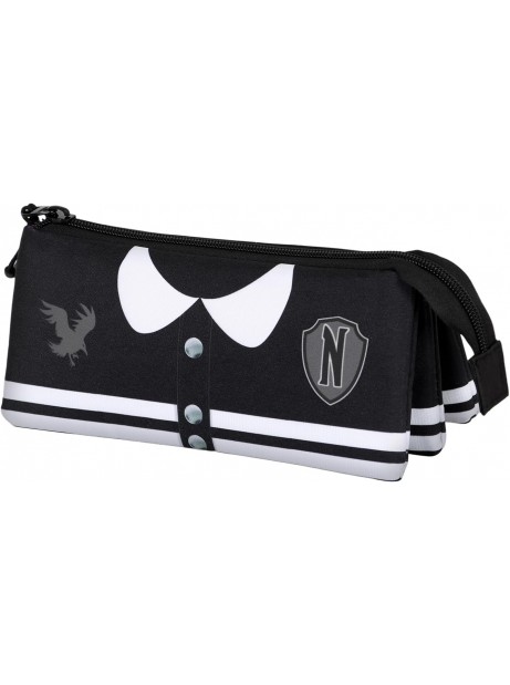 Wednesday Mercoledì Adams Varsity-Astuccio Triplo FAN 2.0, Nero, 23 x 11 cm