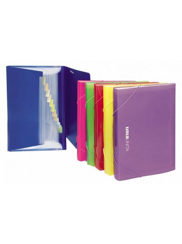 Portadocumenti PPL espandibile a Fisarmonica, dimensione A4 con chiusura ad elastici, by TINTA UNITA 12 Buste 23x33cm