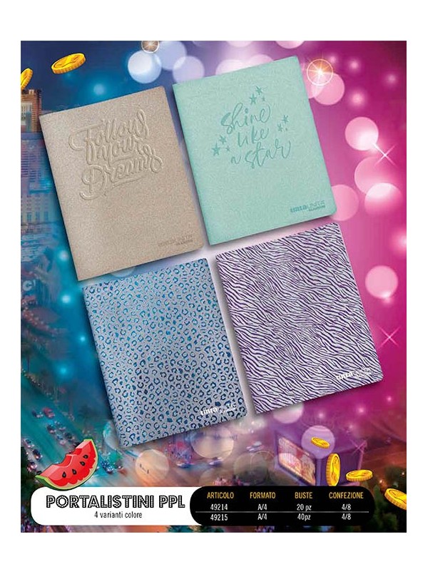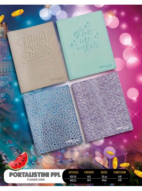 Portalistino Tinta Unita Glamour Glitter 40 Buste A4 Veline Copertina in PPL