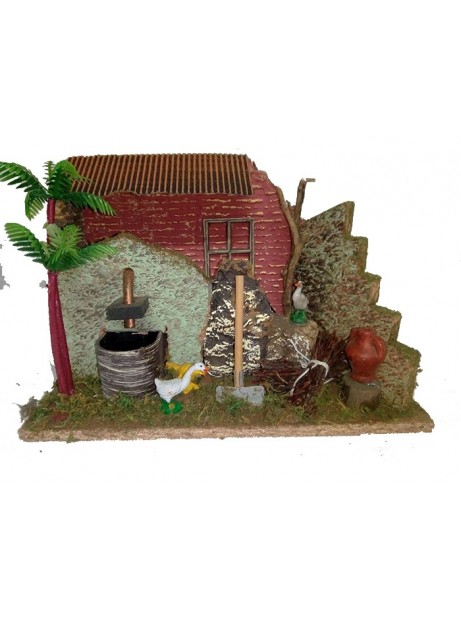 Scenario Presepe Fontana e Fuoco a corrente 25x19Hx14 cm