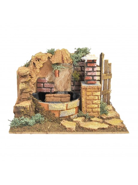 Fontana Funzionante con paesaggio per iul tuo presepe, funziona a corrente 220V 20x14cm