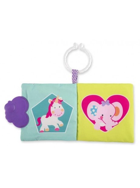 Il libro soft di Chicco è morbido e colorato, realizzato in soffice e resistente tessuto con fantasie allegre e vivaci, con pagine numerate e decorate da simpatici animali e paesaggi della giungla. Il libro ha un anello in plastica che consente il fissaggio al lettino o alla barra del passeggino ed è facilmente lavabile per garantire igiene e sicurezza.