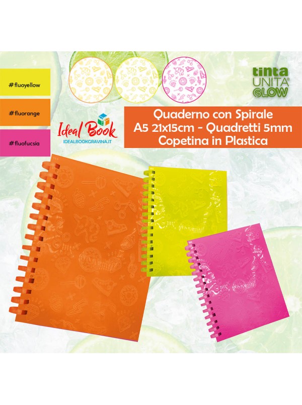 Quaderno A5 spirale LED 70 Fogli - Quadretti 5mm - 80 gr TINTA UNITA Flow