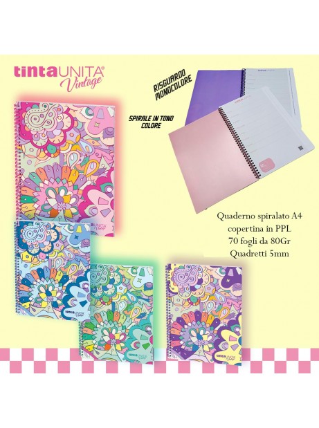Quaderno A4 spirale LED 70 Fogli - Quadretti 5mm 80 gr TINTA UNITA Vintage 2025