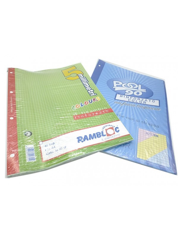 Ricambi fogli Schedario A4 Colorati 5mm Rinforzo Quadretti Rosa Verde Azzurro