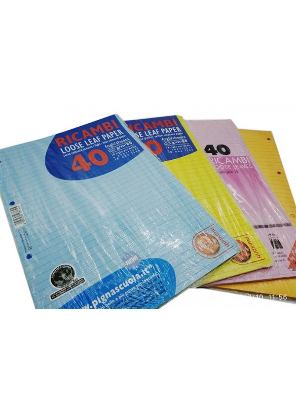 Ricambi A4 Colorati 1R Righi 40 Fogli 21x30 cm Rosa Verde Azzurro Giallo