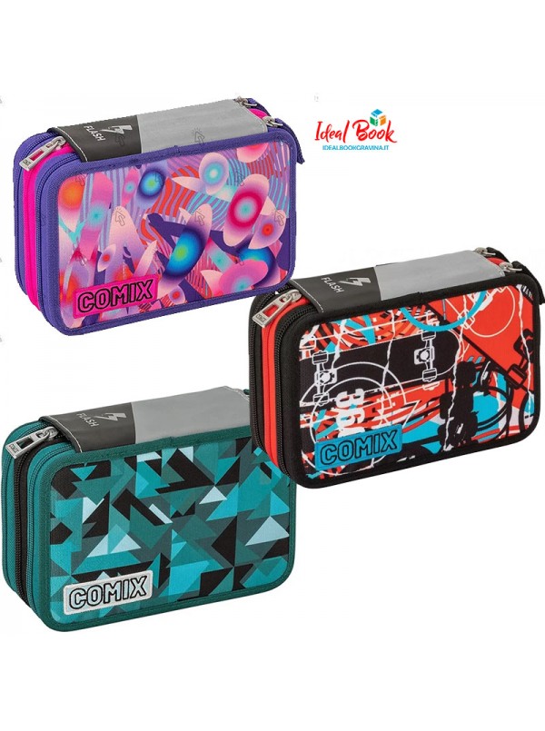 Organizza tutto il tuo materiale di cancelleria per la scuola all'interno dell'Astuccio Scuola 3 Zip Comix Flash.