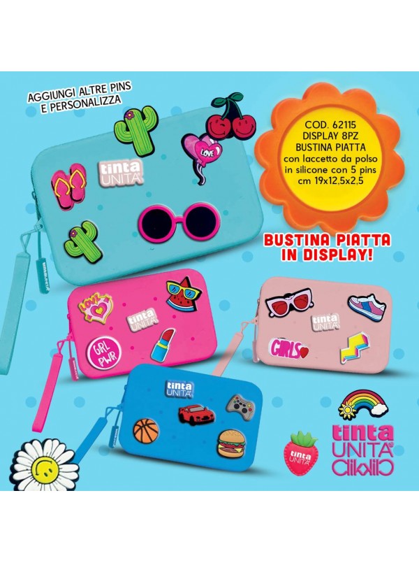 Bustina piatta pochette TintaUnita Clik per il tuo cellulare, trucchi e documenti