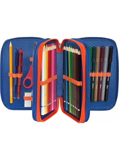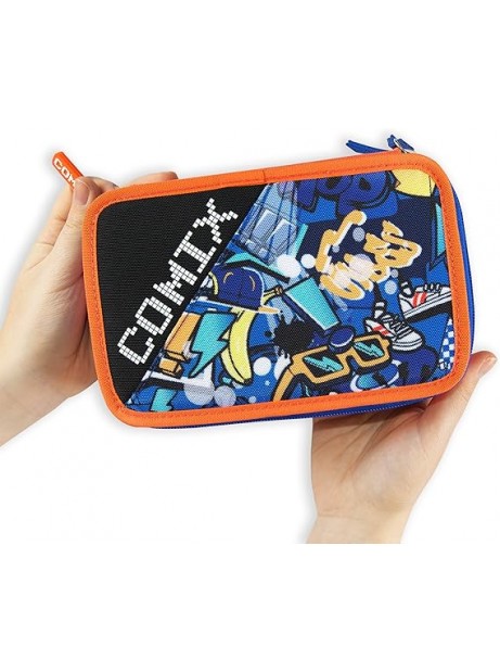 Comix ULTRA BRIGHT - Astuccio 3 Scomparti Bambino e Bambina con Set Cancelleria Incluso con Penna Cancellabile Blu e Rossa
