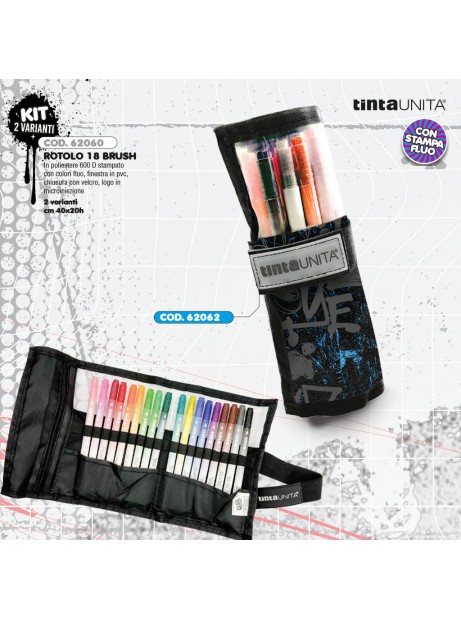 Borsellino Rotolo Tinta Unita Young Fantasy 18 pennarelli Brush Pen doppia punta