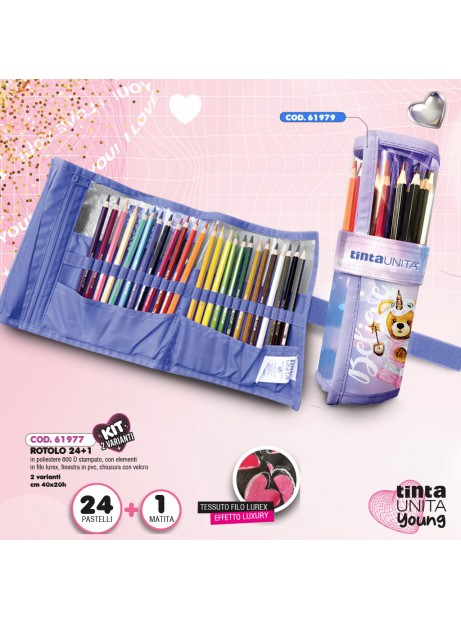Borsellino Rotolo TINTAUNITA Young Orsetto e glitter 24 Pastelli Matita 4.2 mm