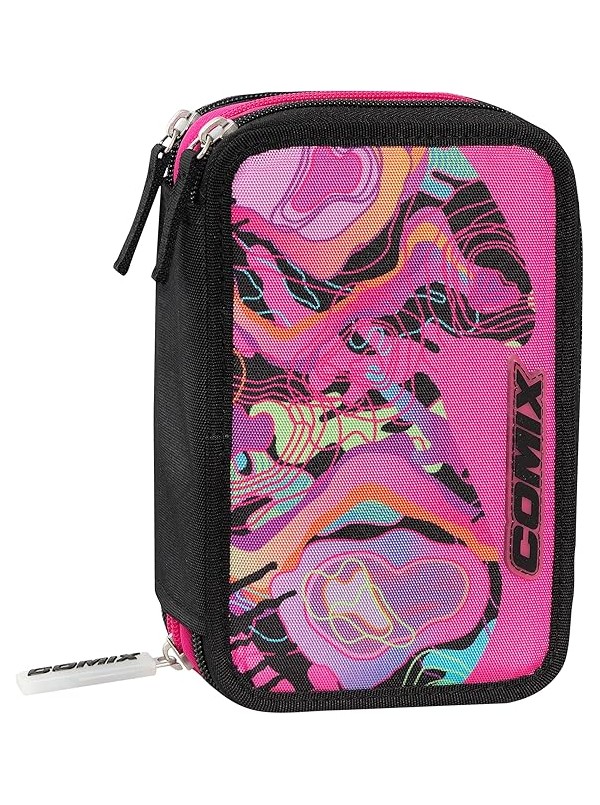 Comix wave fucsia - Astuccio 3 Scomparti Bambino e Bambina con Set Cancelleria Incluso con Penna Cancellabile Blu e Rossa