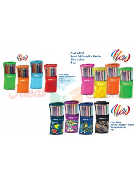 Borsellino Rotolo TINTA UNITA 24 Pastelli Matita 4.0 mm scuola astuccio completo di colori a matita