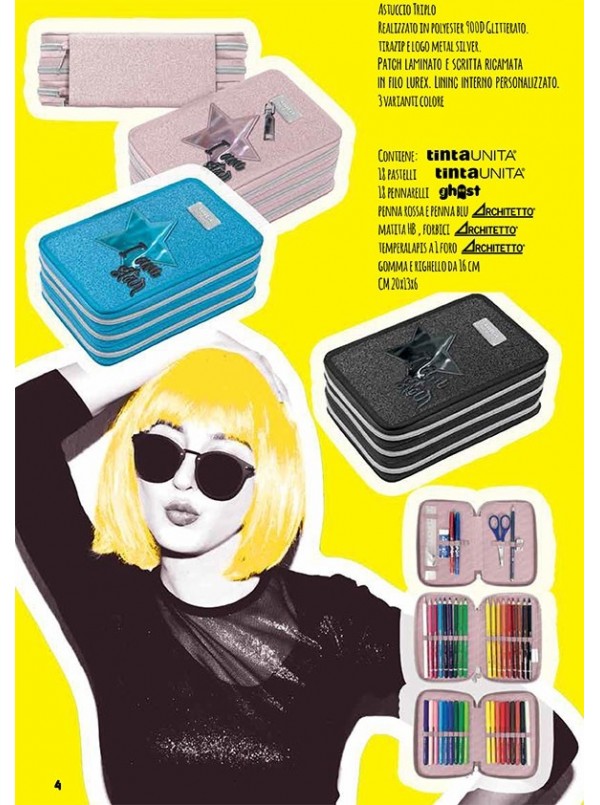Astuccio 3zip Tinta Unita Glamour Completo colori matita spirito scuola glitter