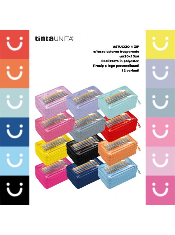 New! Zip esterna con tasca trasparente e 4 pastelli a matita in regalo!