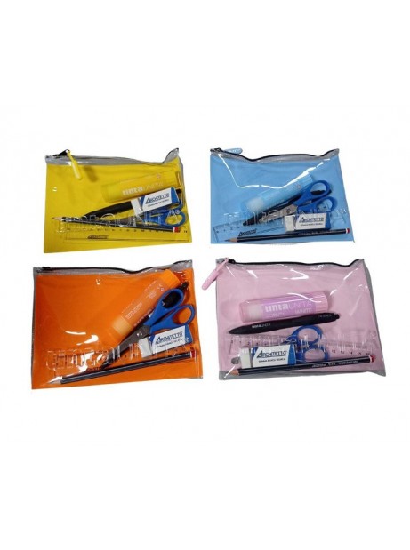 Astuccio Borsellino Trasparente, Zip, cancelleria Tinta Unita scuola università