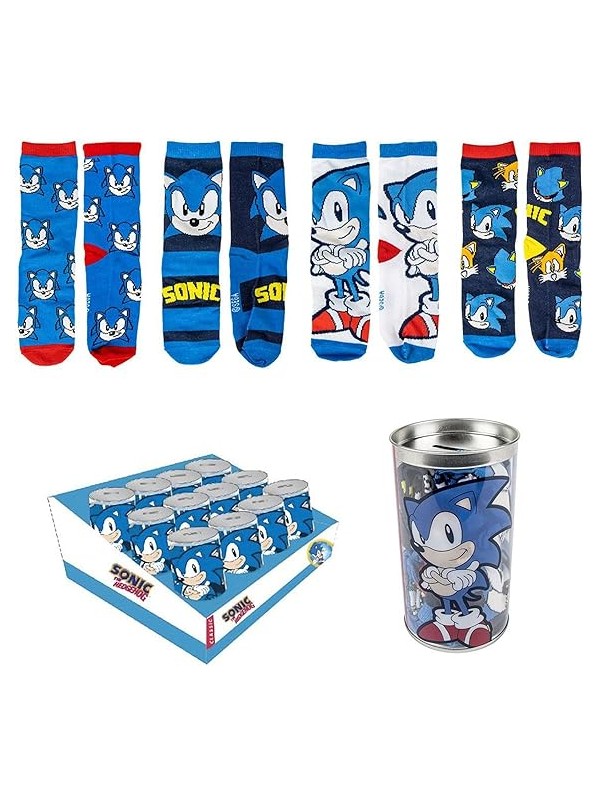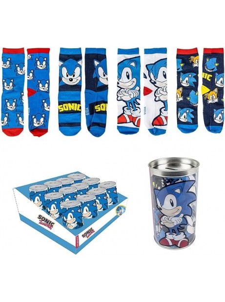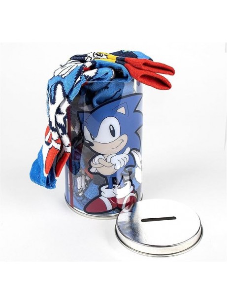 Confezione Salvadanaio e Calzini Sonic 4 Pezzi Unisex Bambini e Ragazzi
