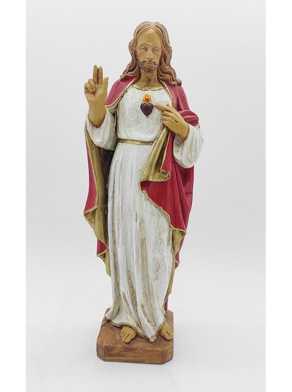 Statua Sacro Cuore di Gesù in plastica decorata a mano, altezza 22cm