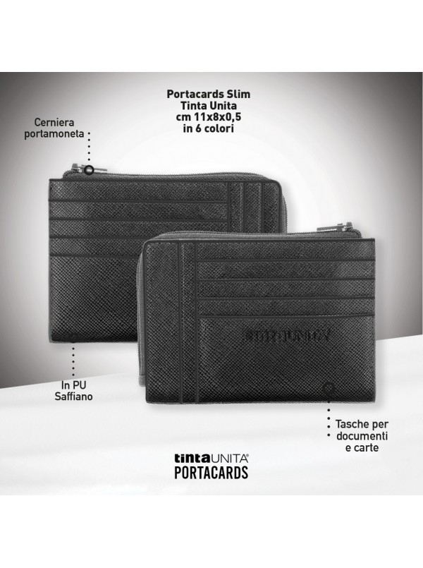 PortaCards Slim TintaUnita Uomo Donna - porta fogli, banconote con zip