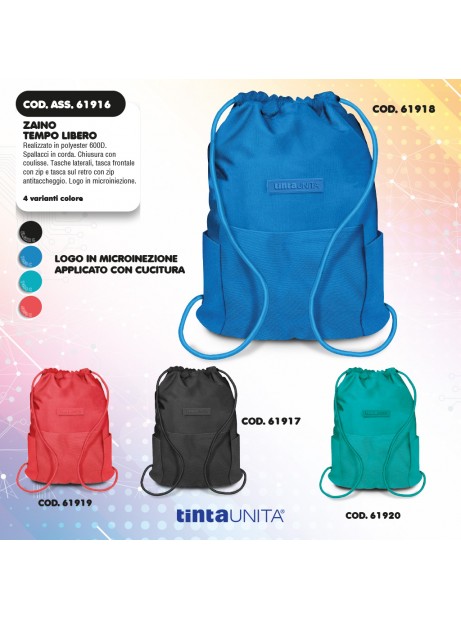 Sacca - zaino tempo libero TintaUNita 41x32 cm In tessuto con tasche Sakky bag