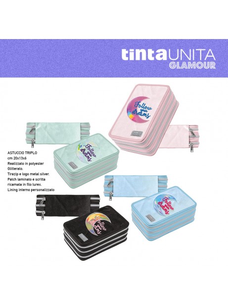 Astuccio 3zip Tinta unita glamour 2022 glitter scuola completo di colori