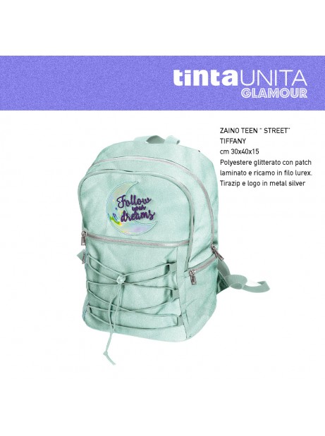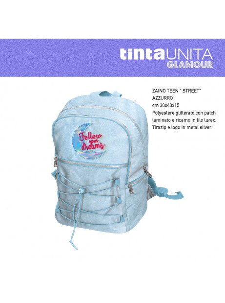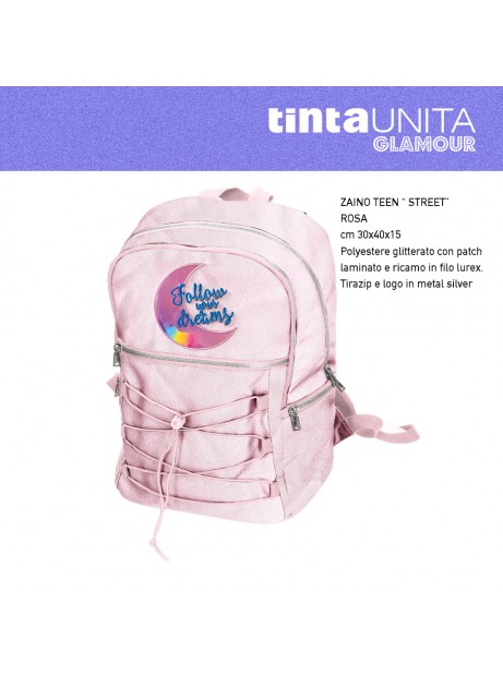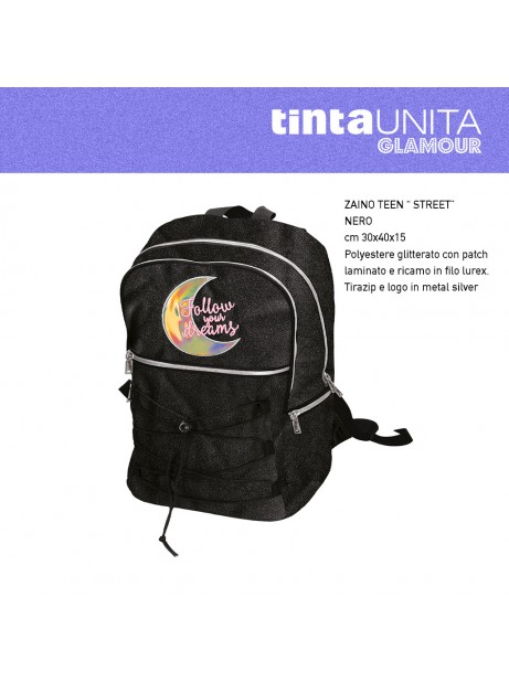 Porta monete a forma di zaintto in tessuto glitterato, con moschettone