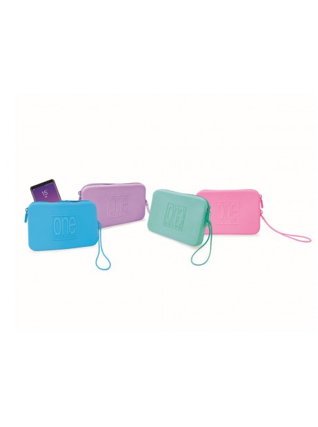 Astuccio Pochette Summer flat in silicone con manico porta cellulare trucchi