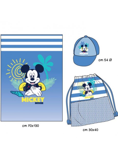 Set Regalo Disney Mickey Mouse zainetto a sacca + telo mare + cappello con visiera