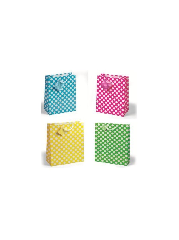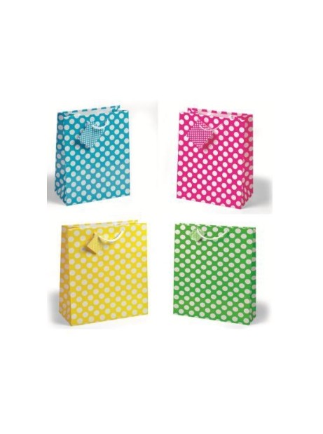 Busta Natalizia Piccola Buste 17,8x22,9x9,8cm in cartoncino con manico in corda pois