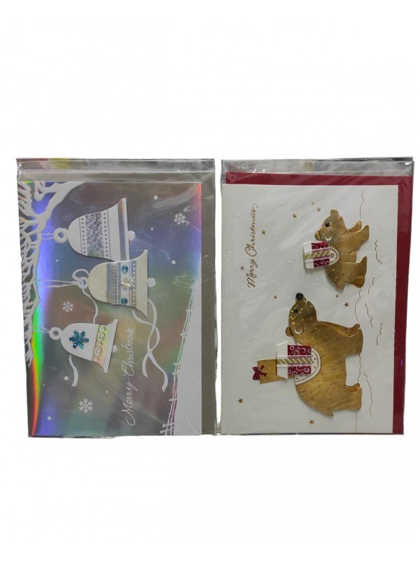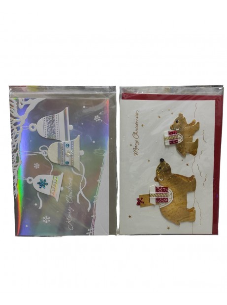 Biglietti auguri natalizi Merry Christmas 11x17 cm con busta dettagli in rilievo