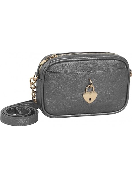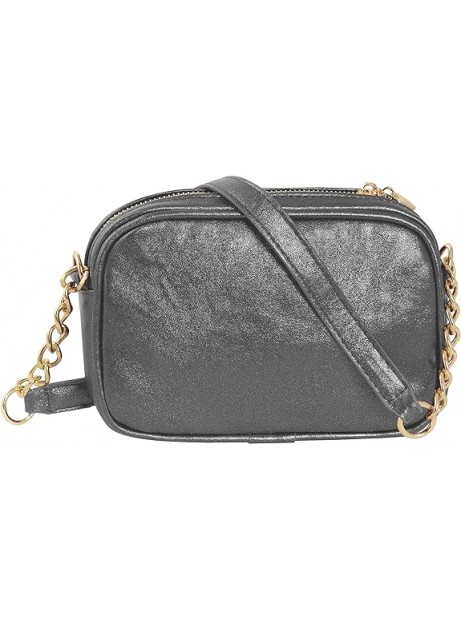 Borsetta Comix Studs - Tracollina Donna, Con Catena in Oro Lucido, Tasca Esterna Chiusa Con Bottone, In Morbida Ecopelle e Metallerie con Finitura in Oro Lucido, Cm 18x11,5hx3 - Grigio