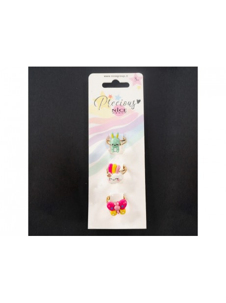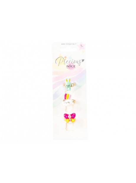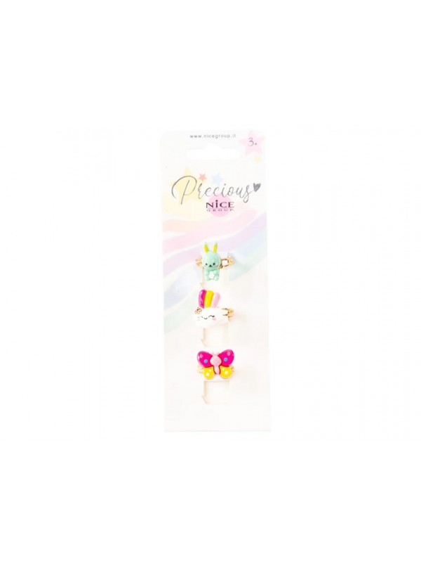 Spring party set anelli - confezione da 3 anelli con farfalla, coniglietto bianco e azzurro