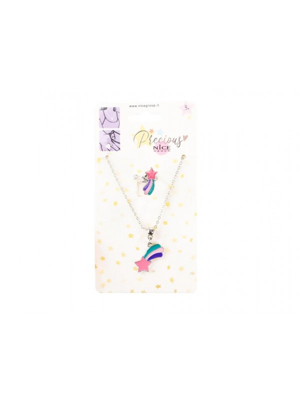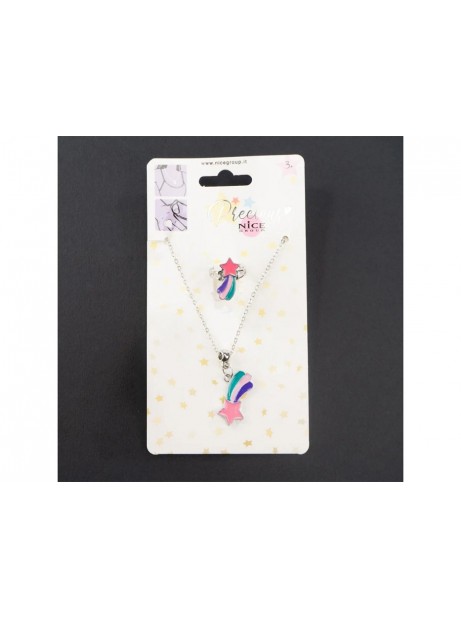 See you bijoux line collana e anello con stella cometa colorata in colori pastello, rosa lilla e verde