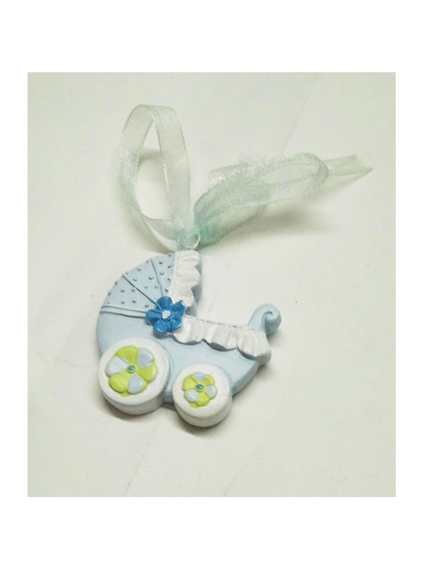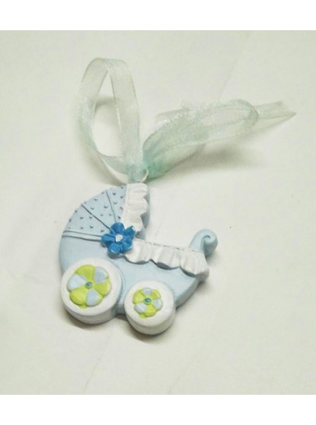 Bomboniera Ricordino Nascita Bambino Culla Azzurra in gesso con calamita 4x4 cm Conf.24 pz
