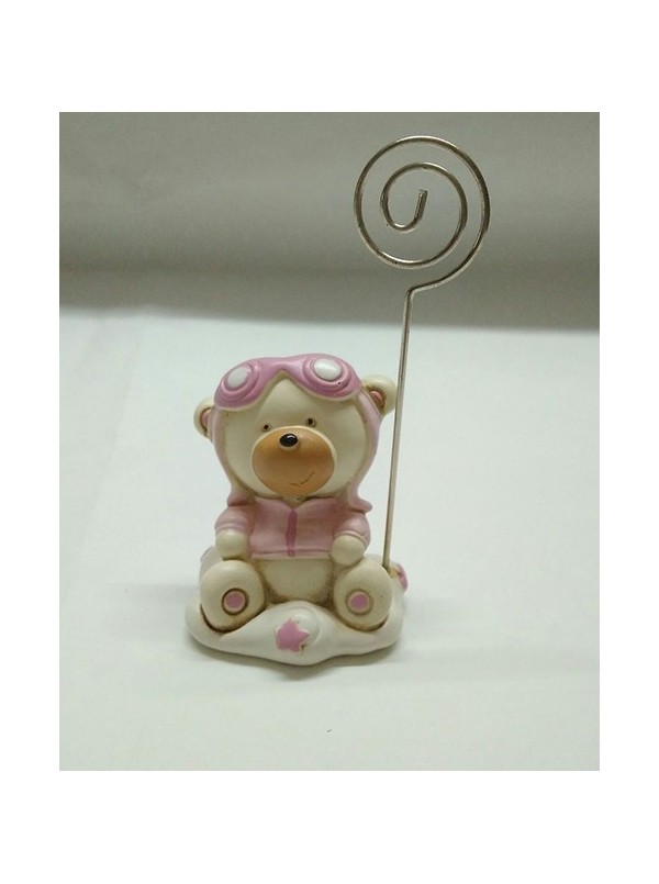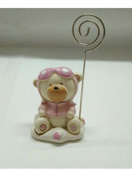 Porta foto Orsacchitto rosa Ricorordino Nascita bomboniera H11x6 cm Conf. 12pz