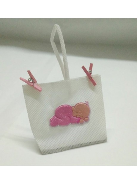 Sacchetto Porta Confetti Nascita Femminucca 7x7,5x4 cm Conf. 12pz Rosa Bambina